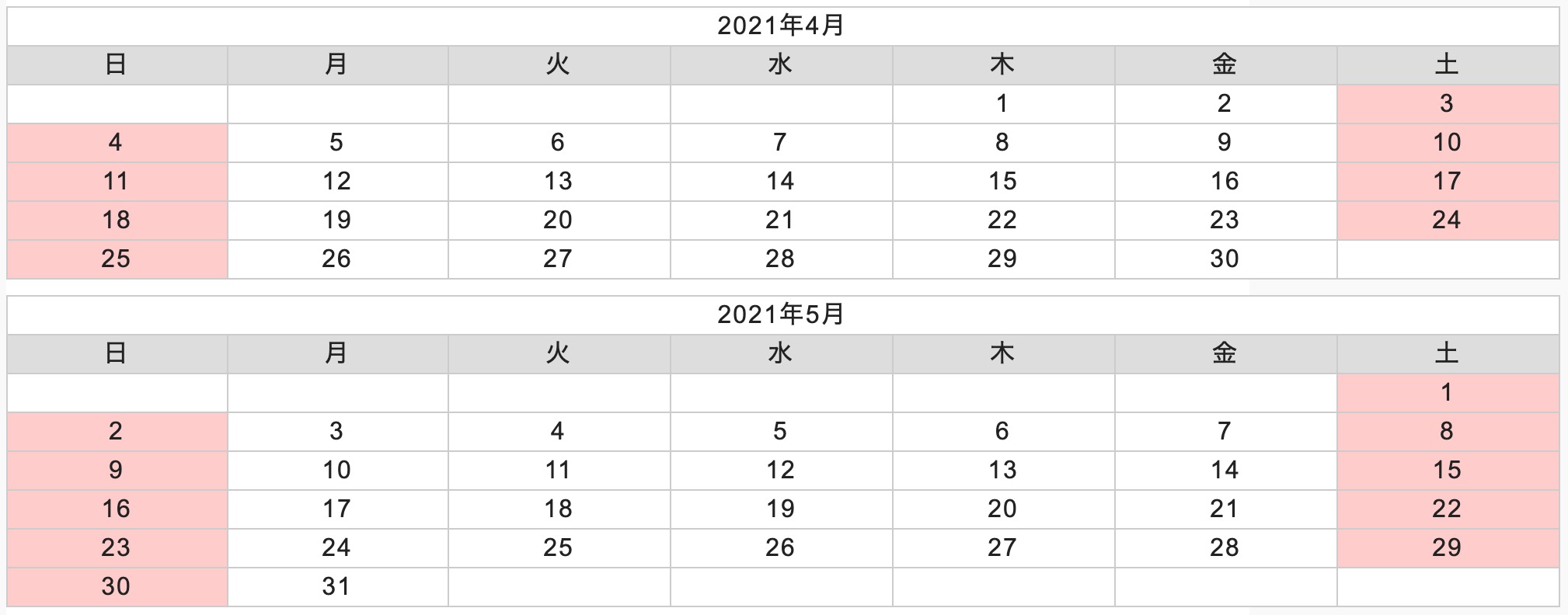 誠に勝手ながら、下記の通り赤いマークの日は休業とさせていただきます。