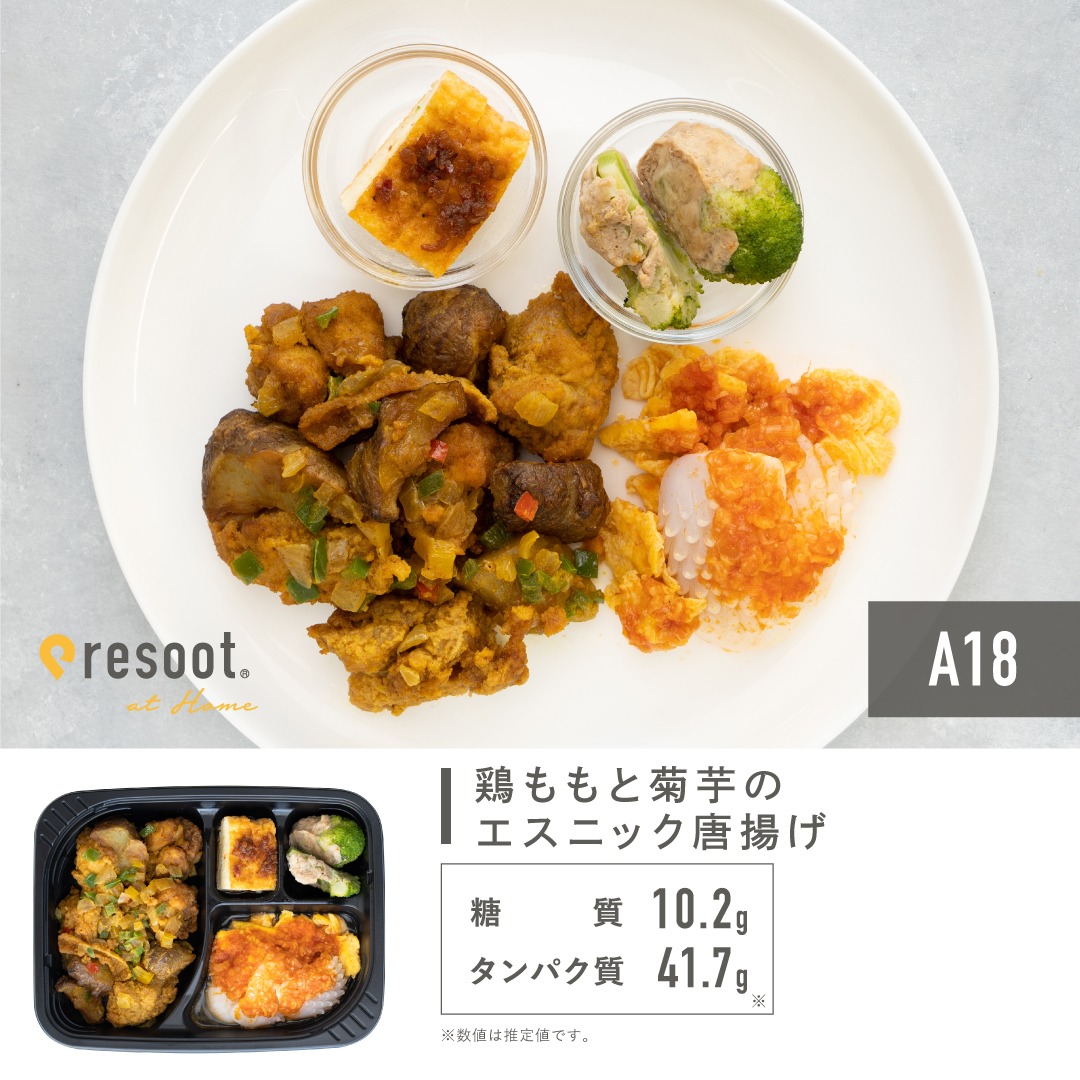 <主菜>鶏ももと菊芋のエスニック唐揚げ <副菜>イカと玉子のチリソース